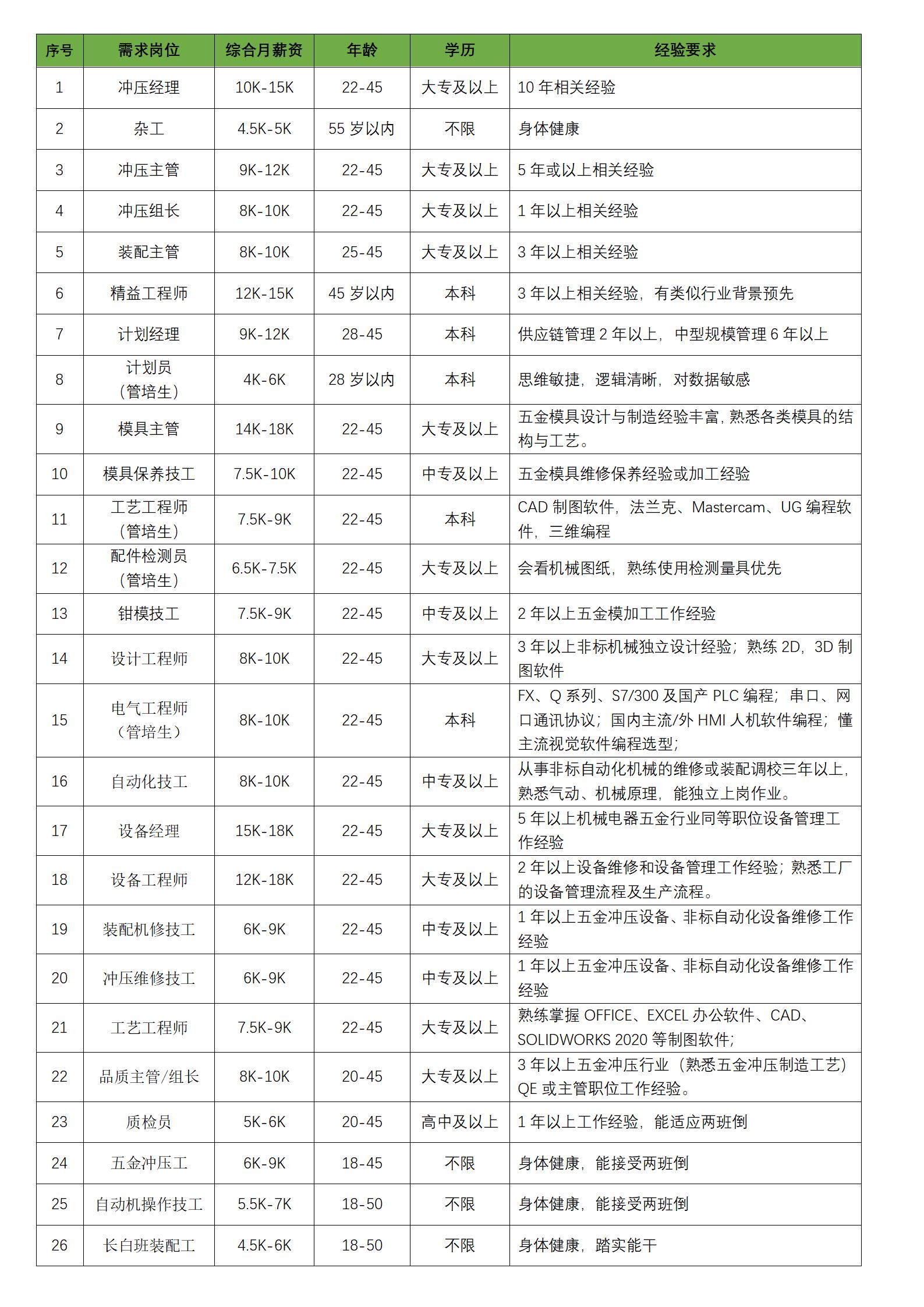 清遠(yuǎn)市星徽精密制造有限公司位于清遠(yuǎn)市龍?zhí)伶?zhèn)銀盞嘉福工業(yè)園。總部是佛山順德北滘的廣東星徽精密制造股份有限公司,股票代碼 300464。公司以鋼珠滑軌、鉸鏈等家居五金配件為主導(dǎo)產(chǎn)品,生產(chǎn)的精密金屬連接件廣泛應(yīng)用于多個(gè)領(lǐng)域。作為家居五金行業(yè)首家上市公司及滑軌、鉸鏈行業(yè)領(lǐng)導(dǎo)者,為員工提供發(fā)揮平臺(tái)和廣闊發(fā)展空間。因業(yè)務(wù)發(fā)展需要,現(xiàn)誠(chéng)聘以下人員。