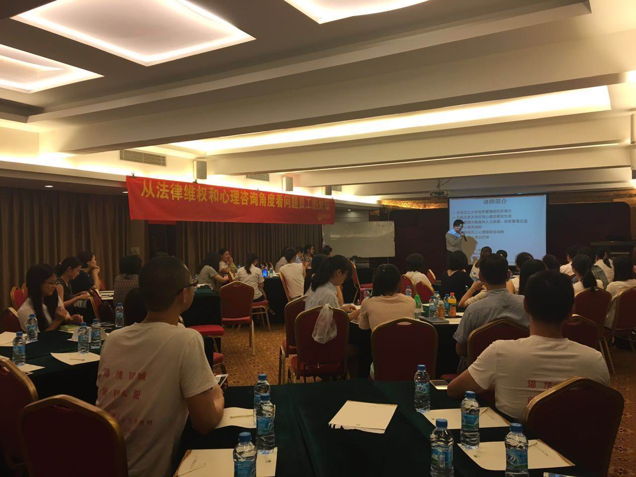 9月18日下午,由清遠(yuǎn)市錦繡前程集團(tuán)主辦的北京大學(xué)應(yīng)用心理學(xué)聯(lián)盟公開(kāi)課在清遠(yuǎn)市維也納酒店舉行。此次公開(kāi)課非常幸運(yùn)的邀請(qǐng)到臺(tái)灣淡江大學(xué)信息管理研究所碩士林存德老師為大家授課,60多名人力資源管理師的學(xué)員前來(lái)參加了此次的公開(kāi)課。